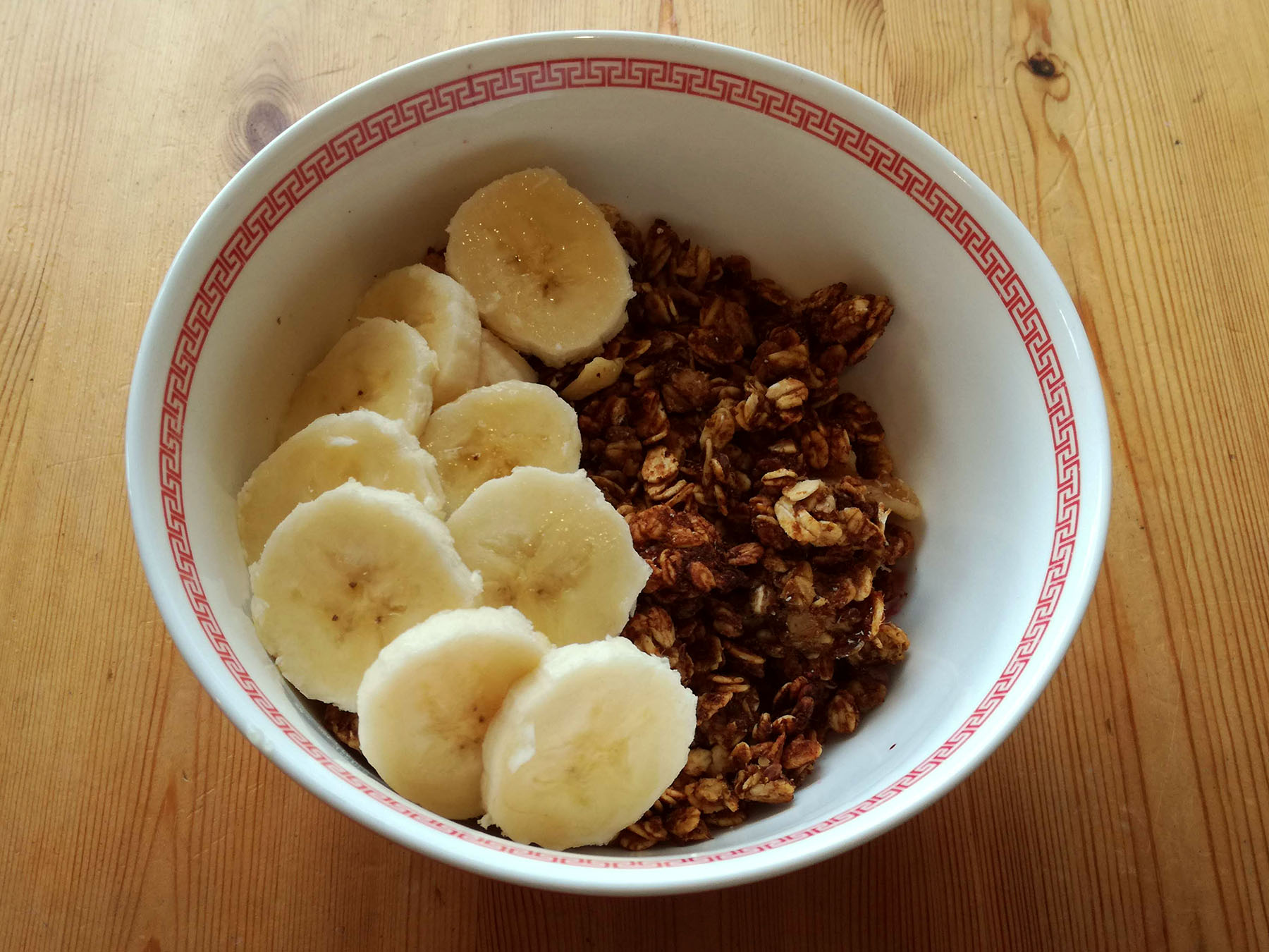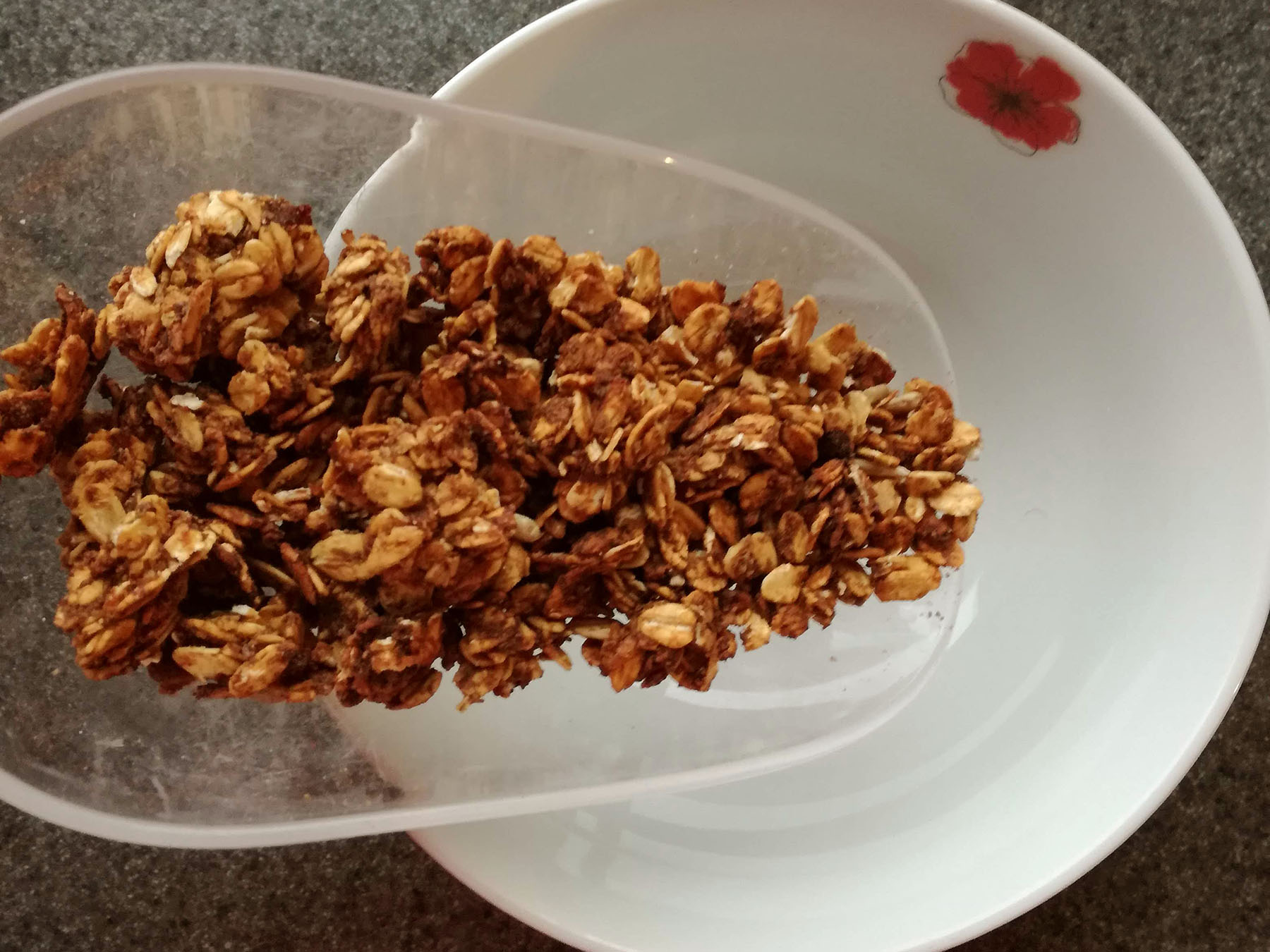 I’ve been trying different ways of using up pumpkin recently as we’ve had a few enormous crown pumpkins to get through. I had some cooked pureed pumpkin sitting in the fridge when I went to make some toasted muesli and thought I might as well chuck some in and see how it went. The result? A delicious wholesome pumpkin pie flavoured breakfast that will fuel you up all morning without weighing you down.
